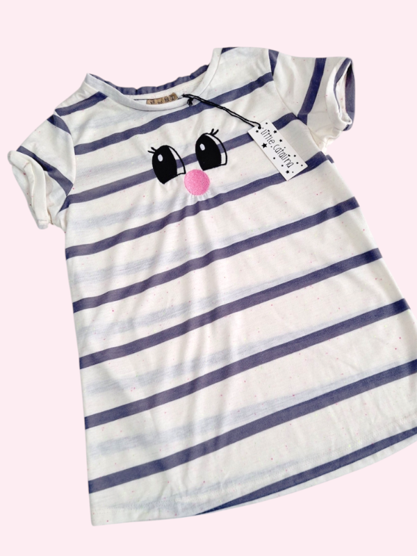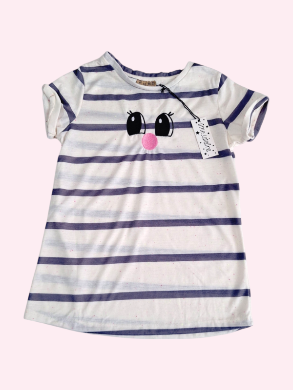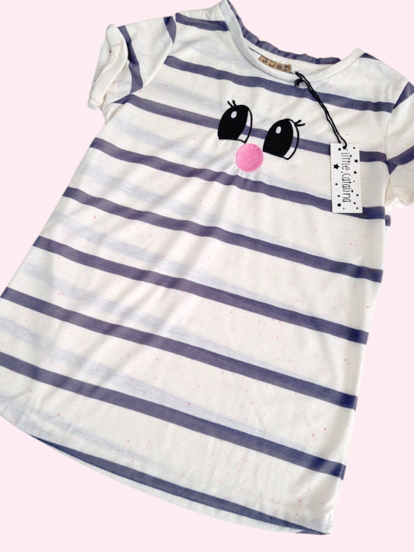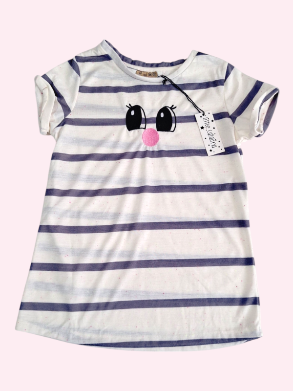 Remera manga corta rayada crudo con gris y carita Little Catalina 6 años