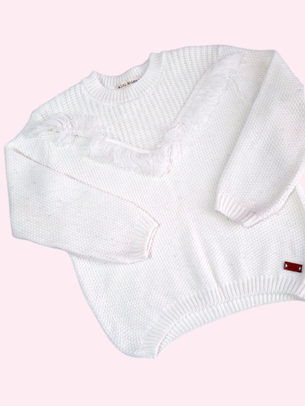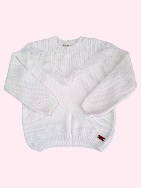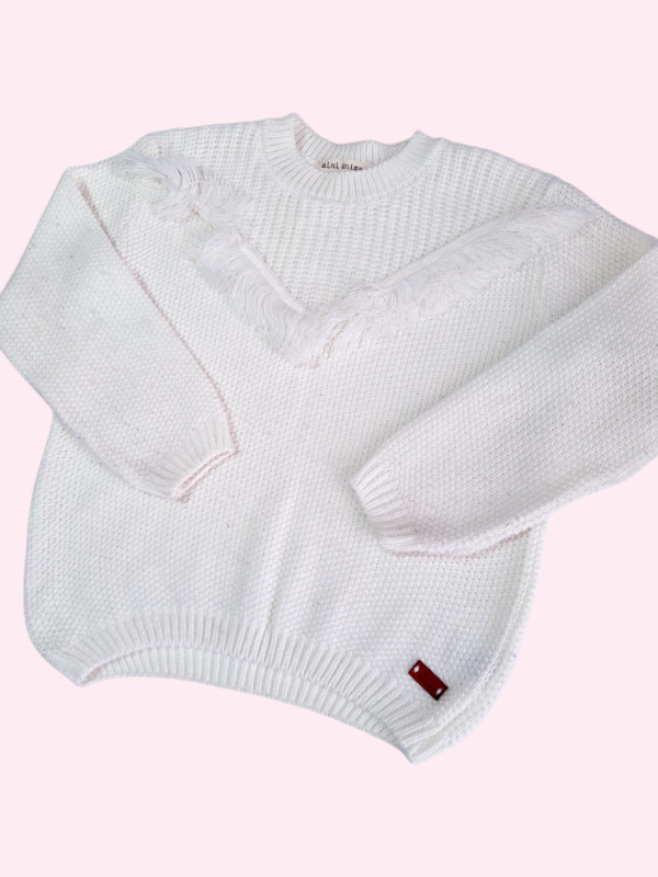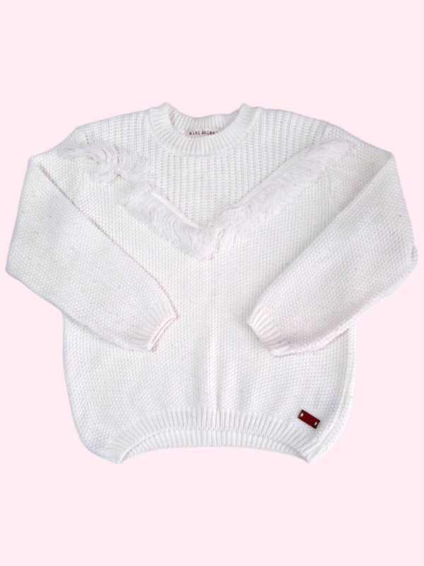Sweater tejido color crudo con flecos Mini Anima 6 años