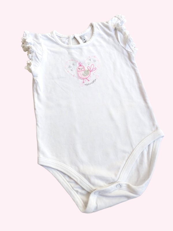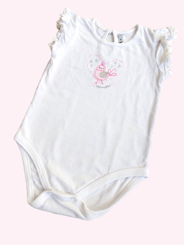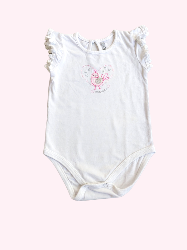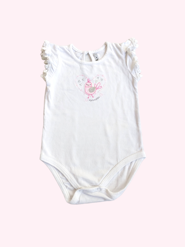 Body sin mangas blanca con pajarito rosa Mimo 6/9 meses