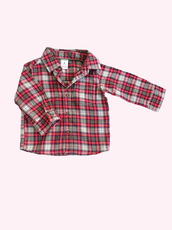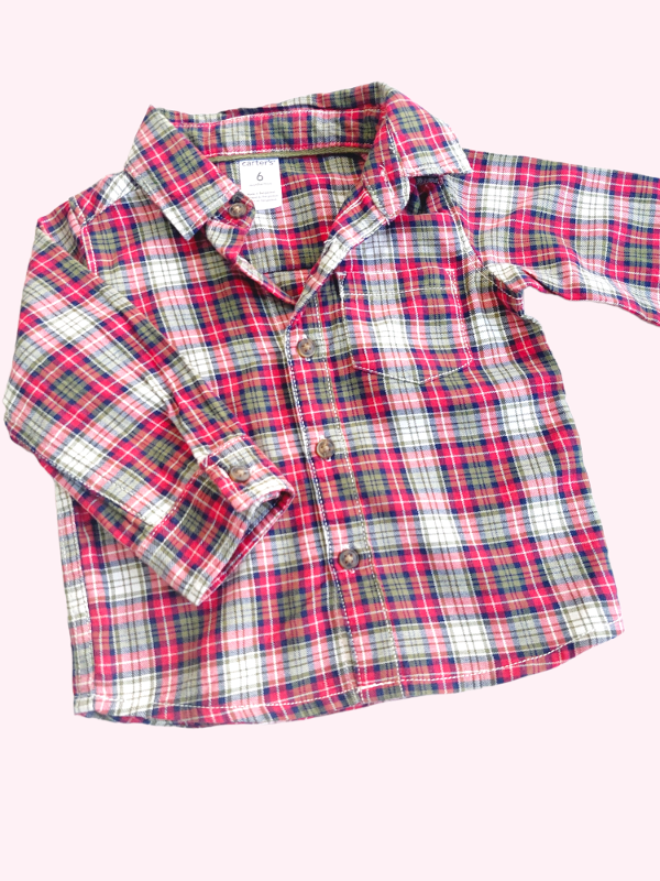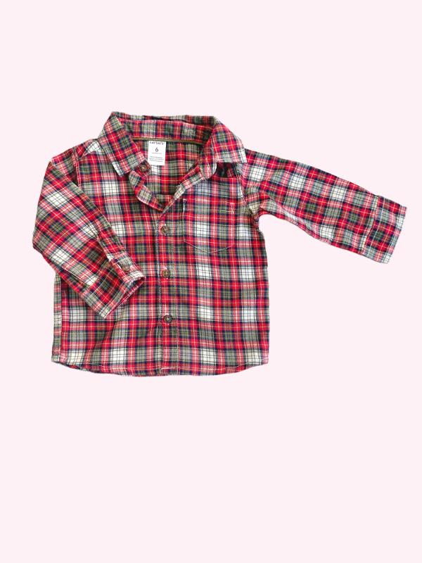 Camisa manga larga cuadrille verde con rojo Carters 6 meses