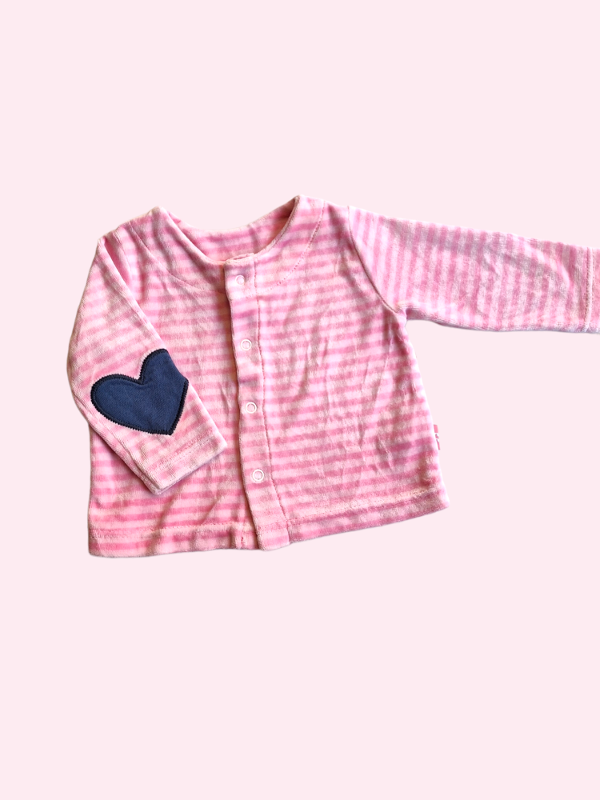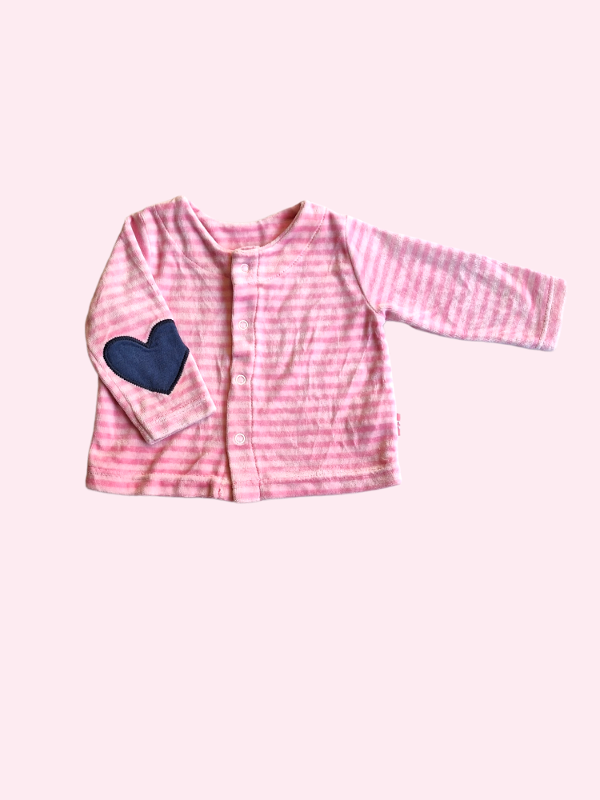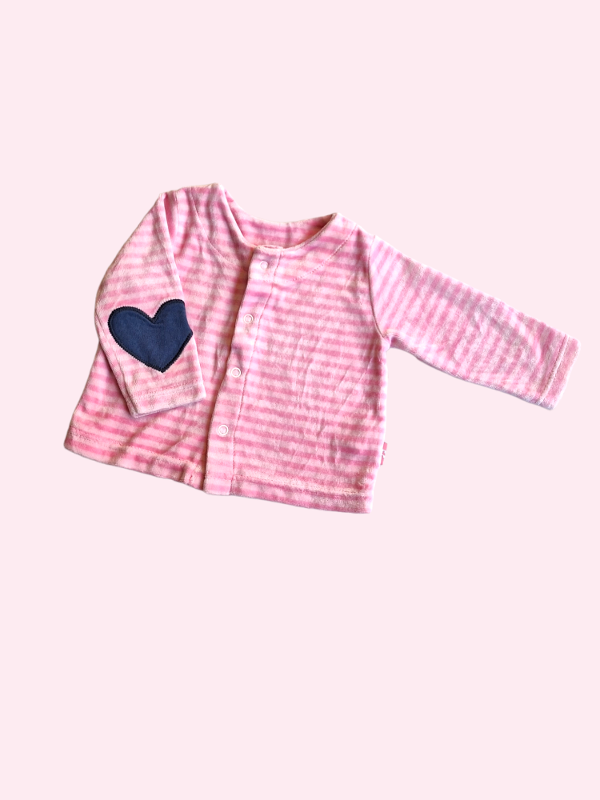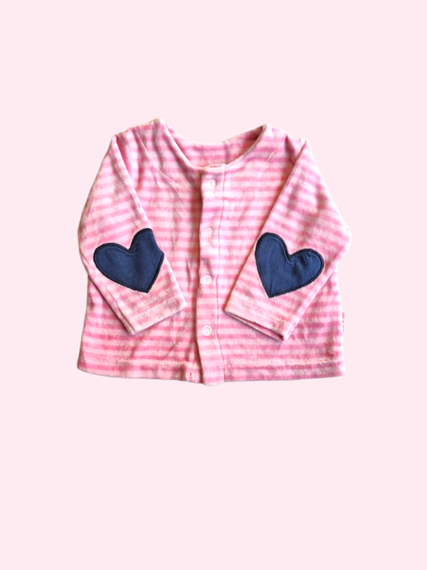 Camperita rayada rosa de plush con corazones en codos Owoko 6 meses