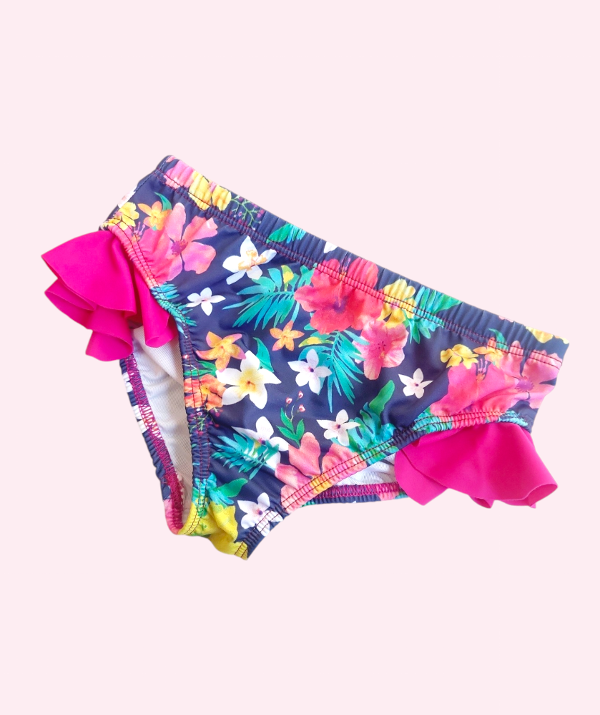 Conjunto UV azul y fucsia con flores Mulet 6/9 meses NUEVA