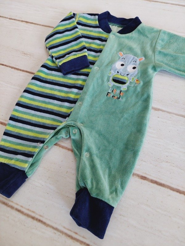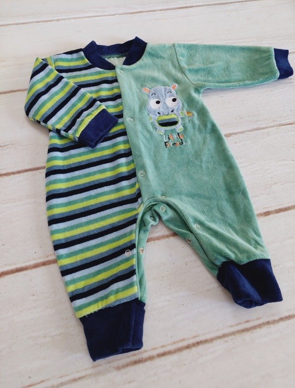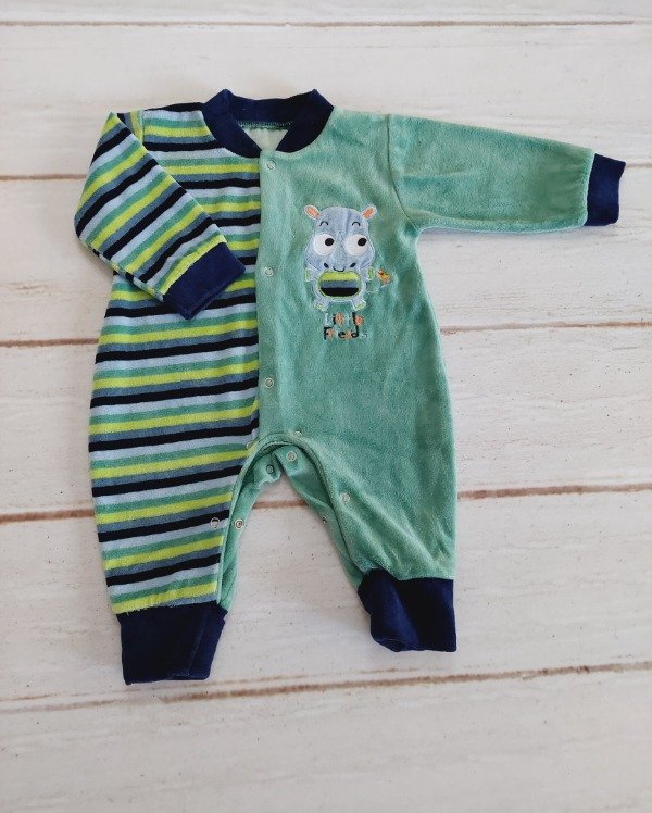 Enterito verde a rayas con Hippo de plush Simpa 6/9 meses