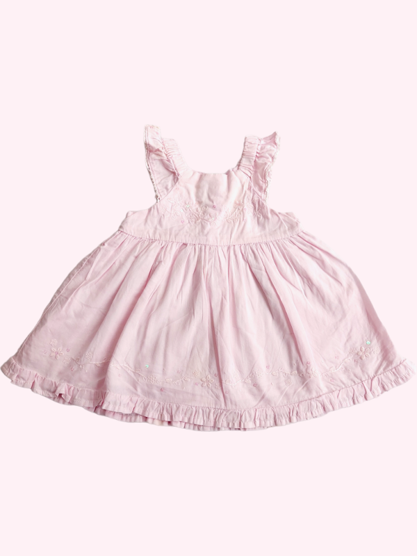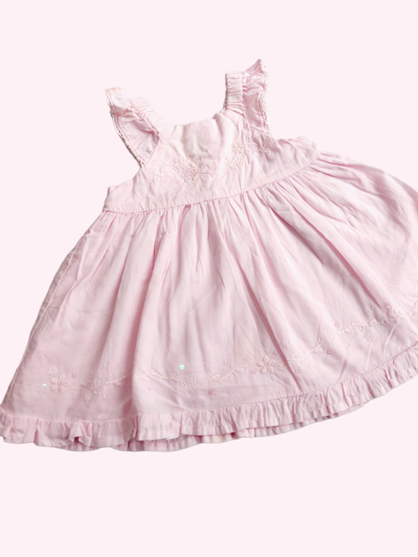 Vestido sin mangas rosa con lentejuelas y bordados Mimo 6/9 meses
