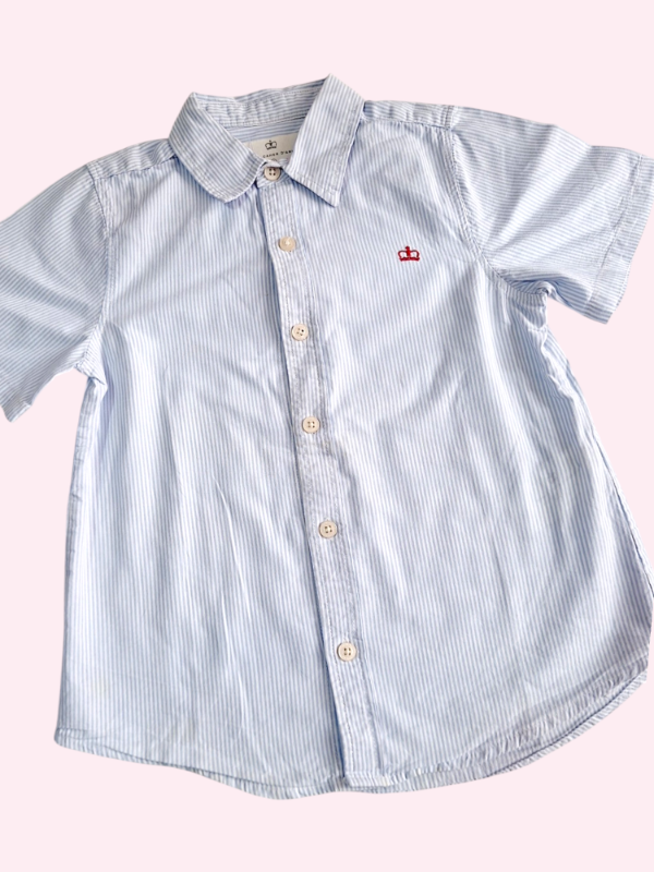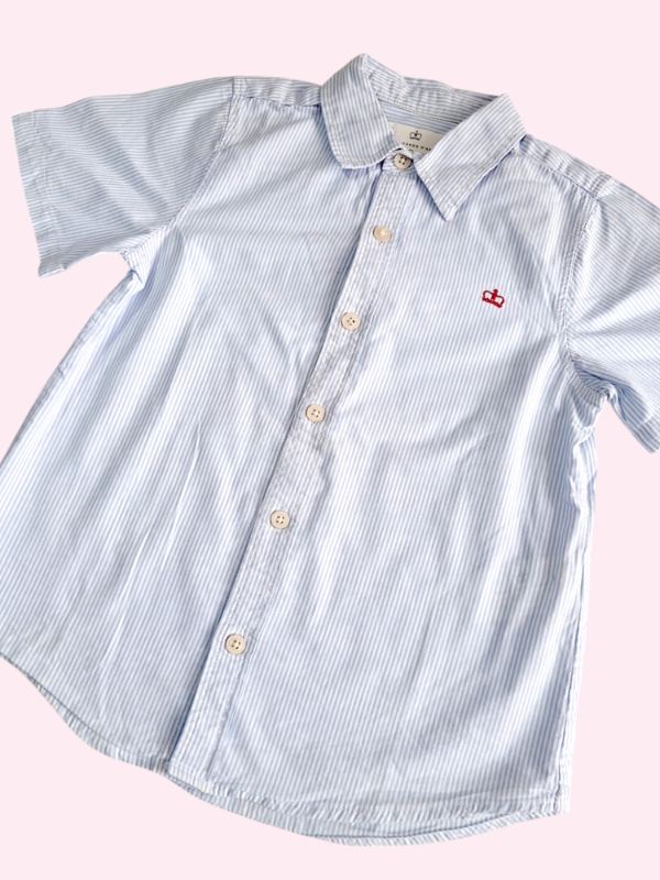 Camisa manga corta rayada celeste y blanco Paula 7/8 años