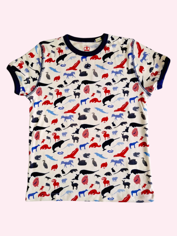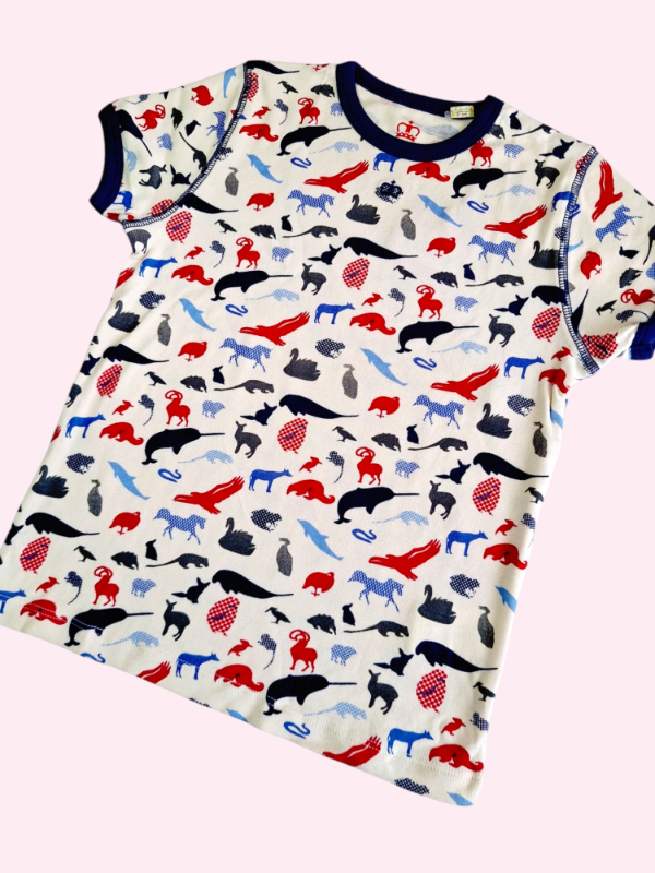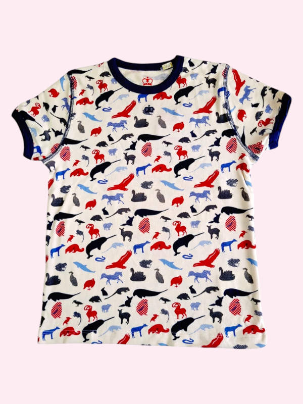 Remera manga corta color crema con dinos Paula 7/8 años NUEVA