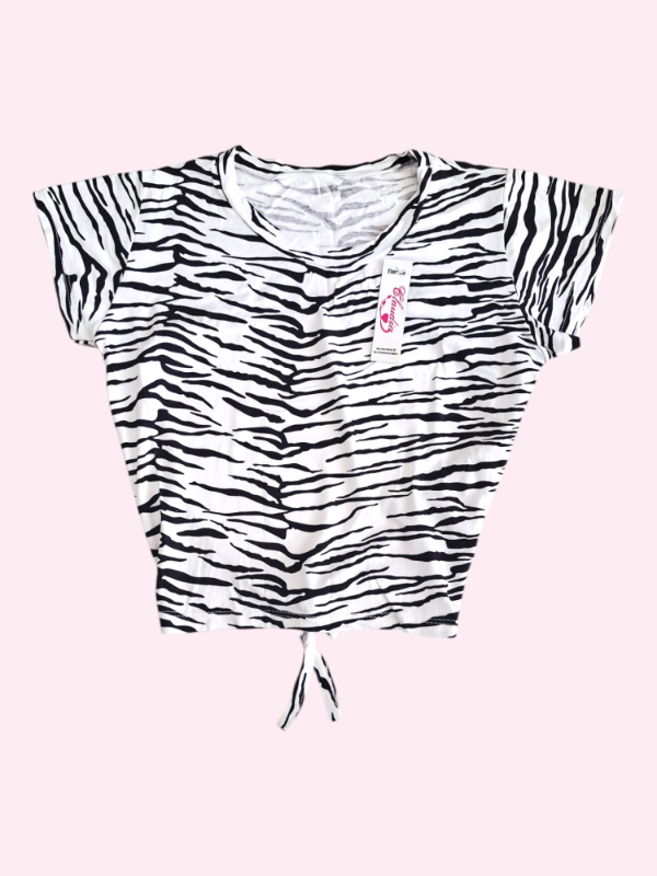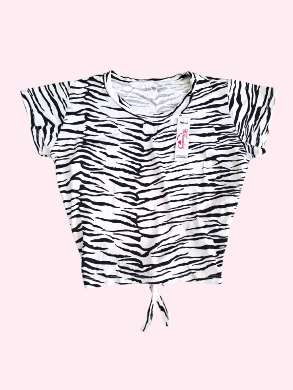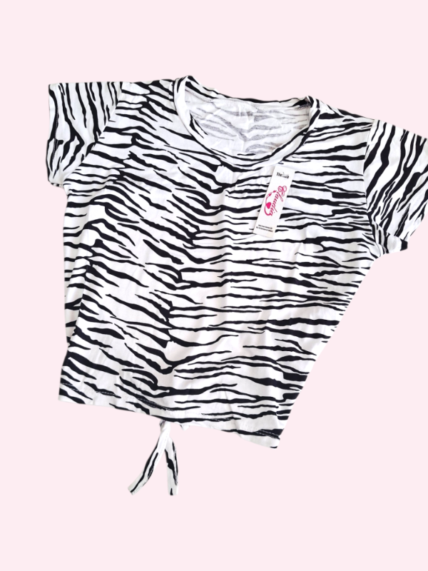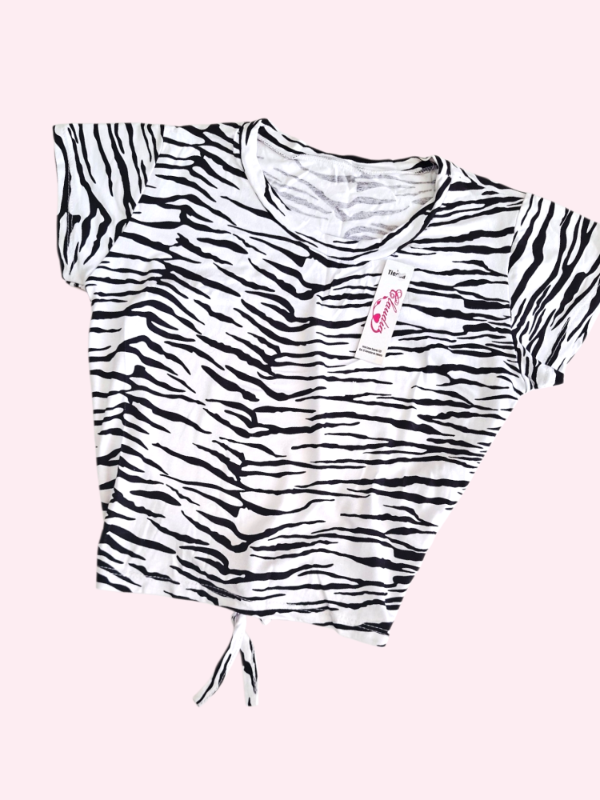 Remera manga corta con espalda abierta animal print 7/8 años NUEVA