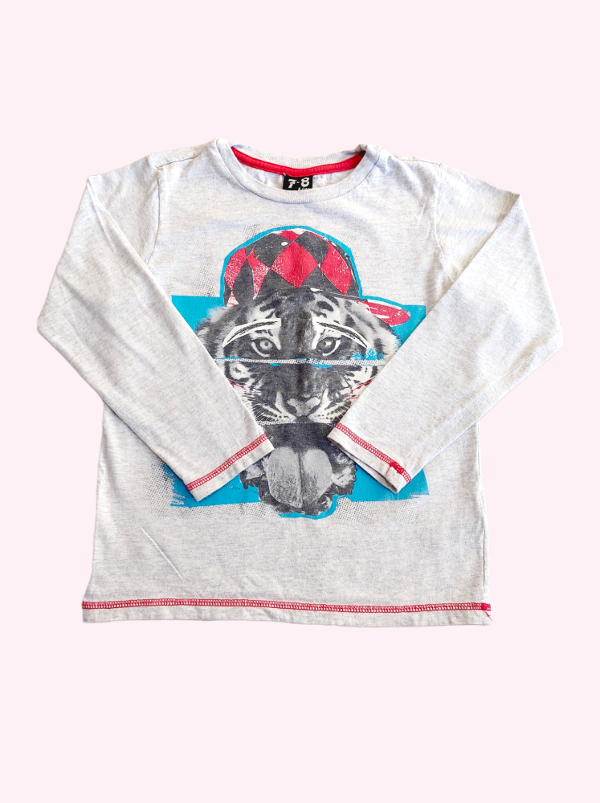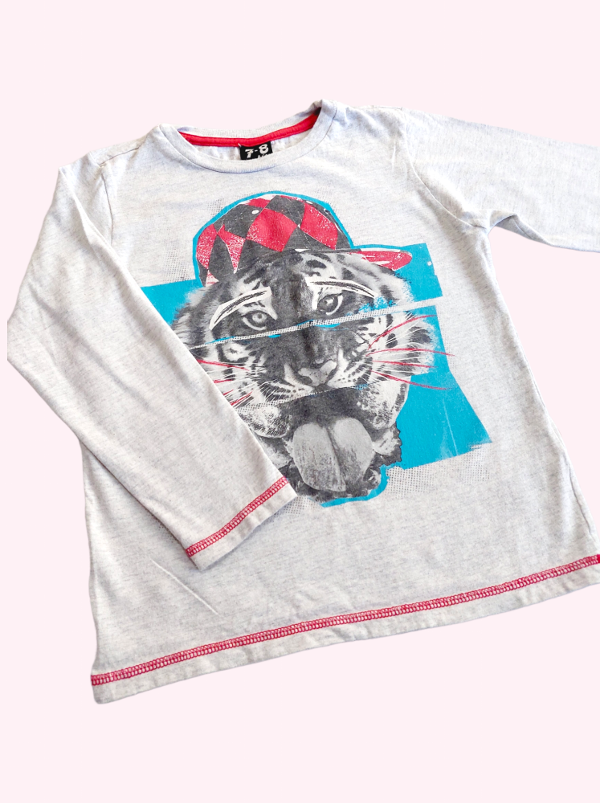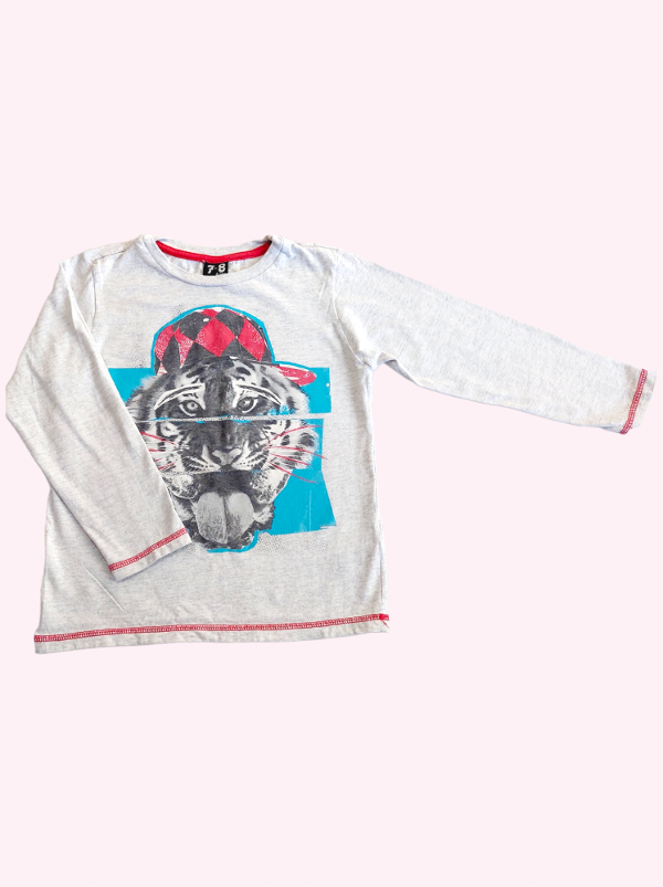 Remera manga larga gris melange con tirgre Grisino 7/8 años
