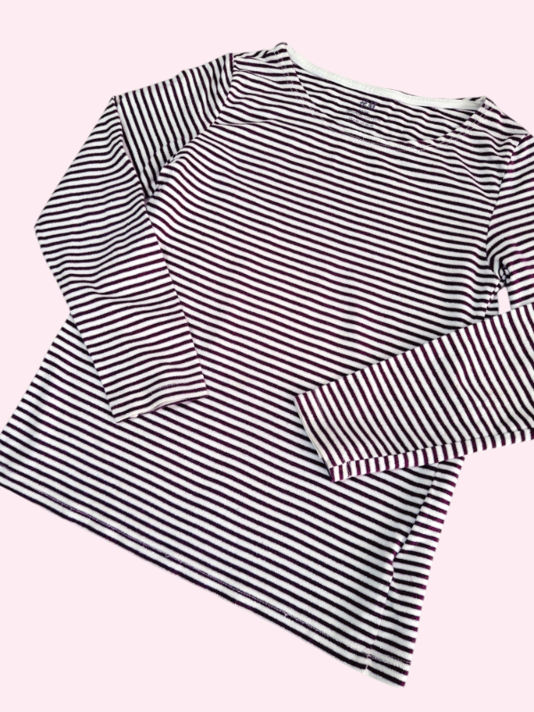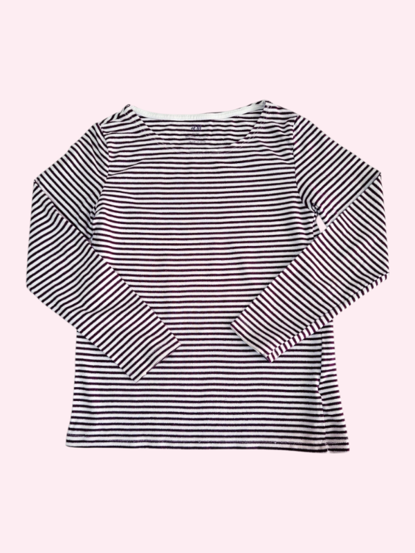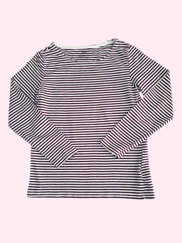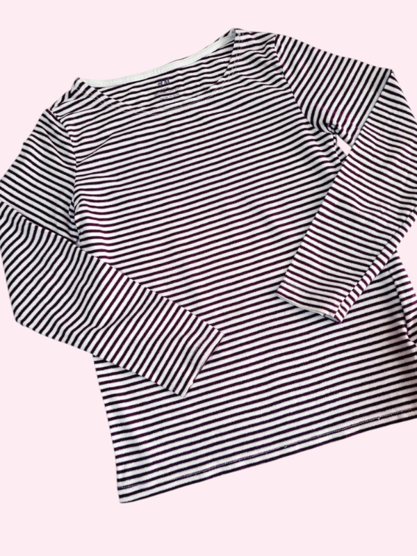 Remera manga larga rayada bordo blanca y brillos HYM 7/8 años