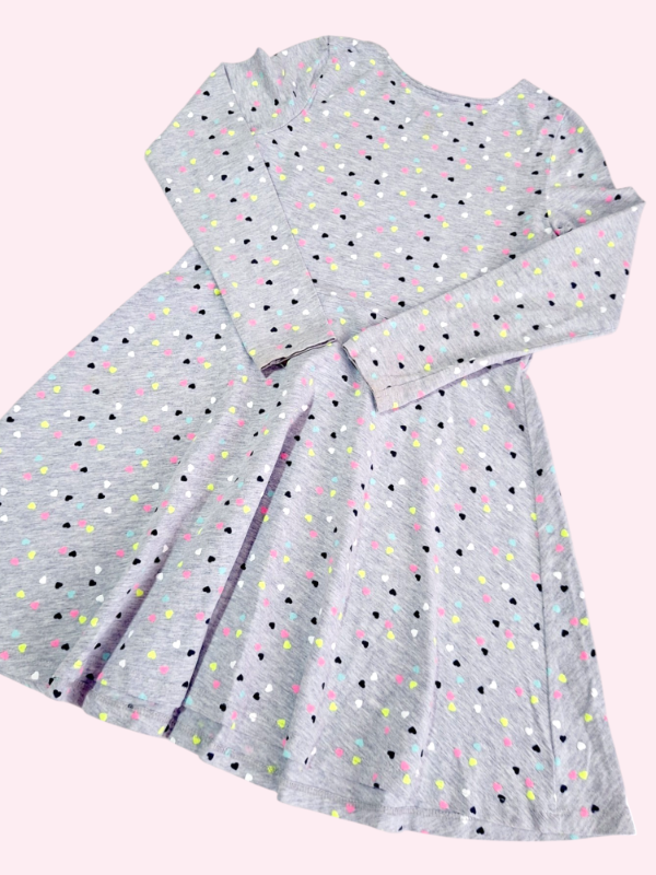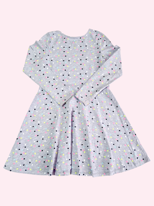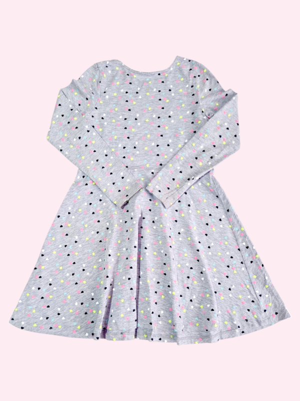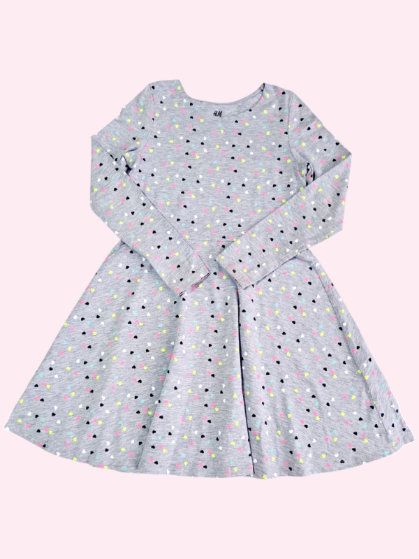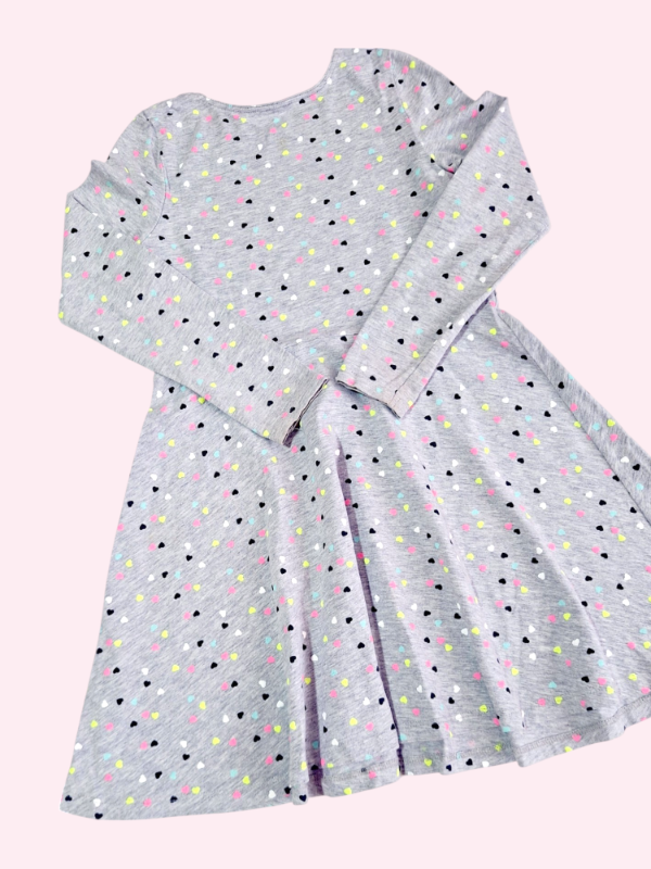 Vestido manga larga gris melage con corazones HYM 7/8 años