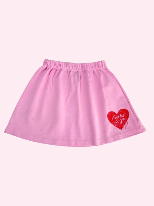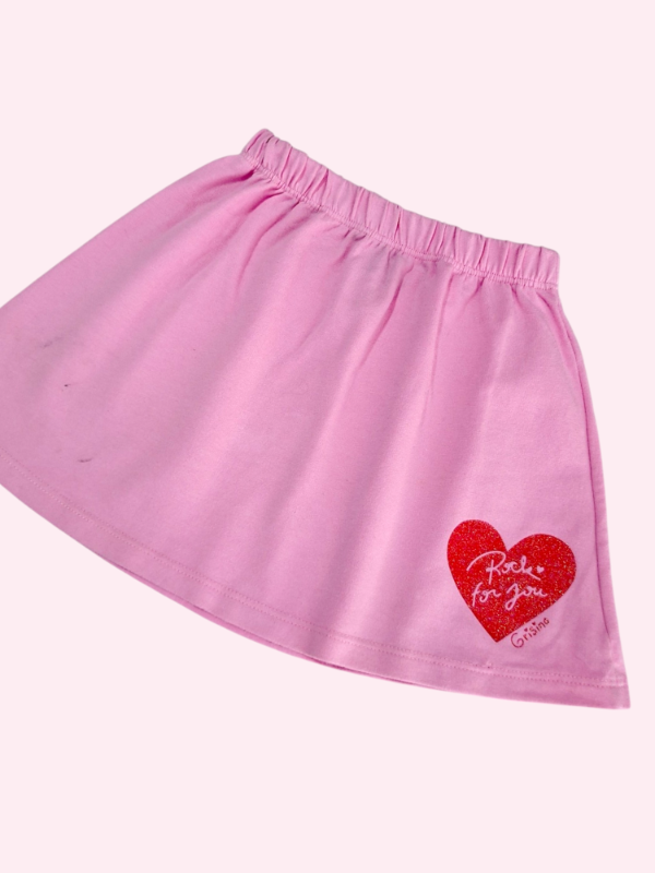 Pollera rosa con corazon brilloso ROCK Grisino 8/9 años