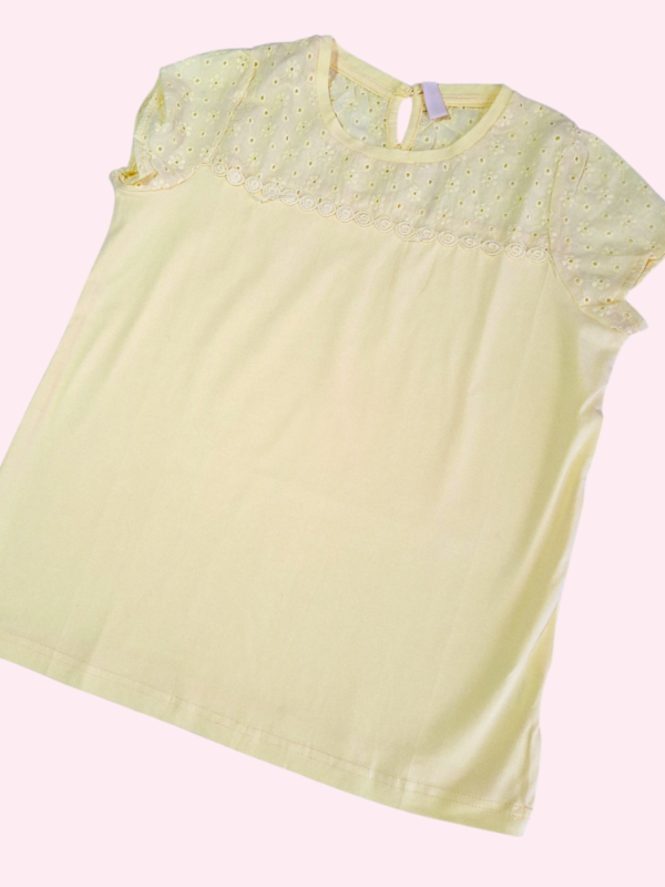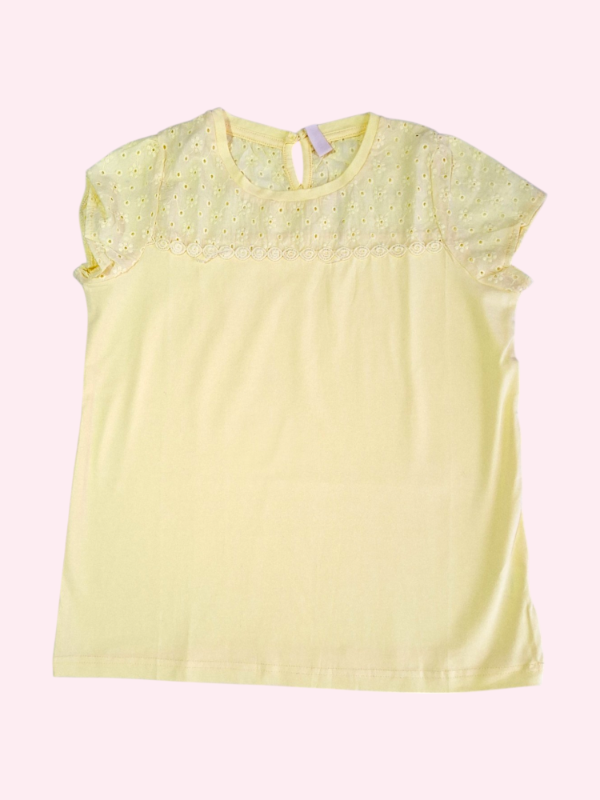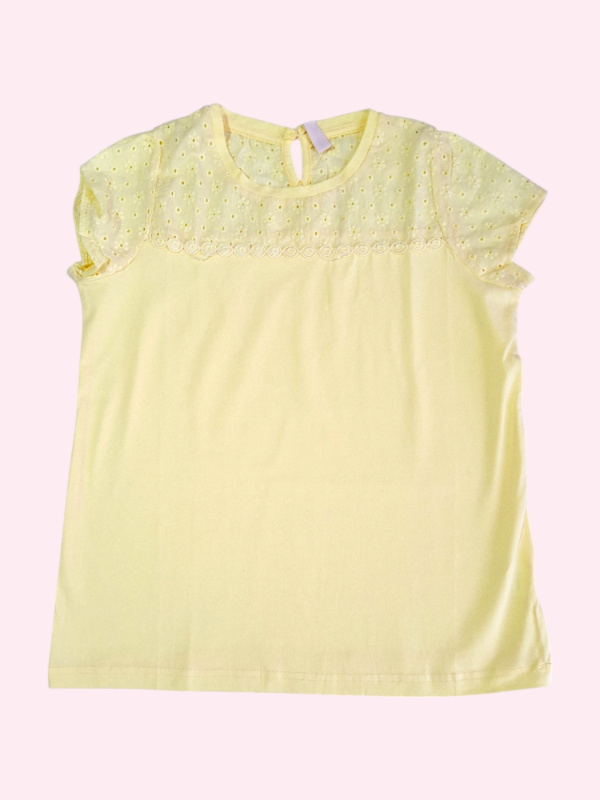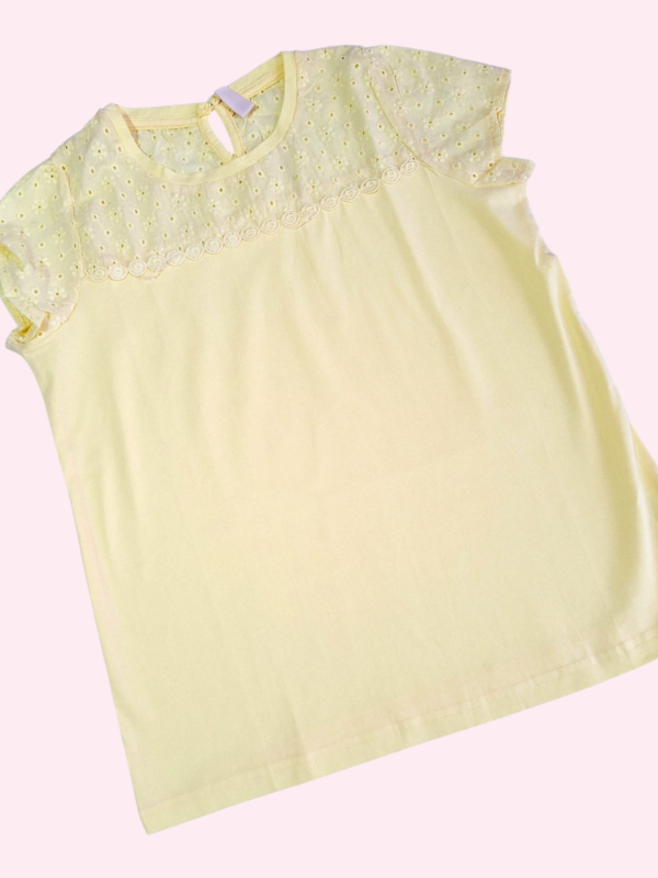 Remera manga corta amarillo claro con broderie Trendy 8/10 años