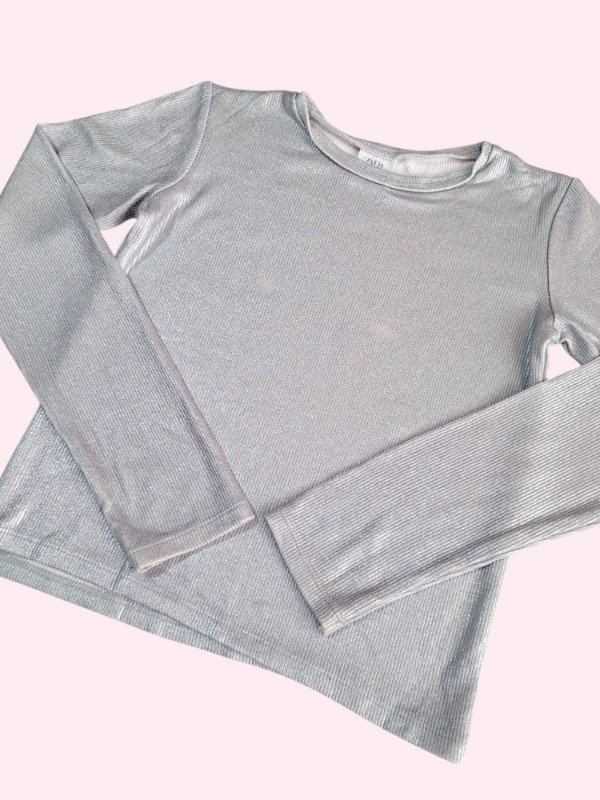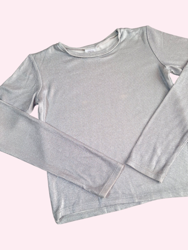 Remera manga larga morley brillosa color plateado Zara 8/9 años