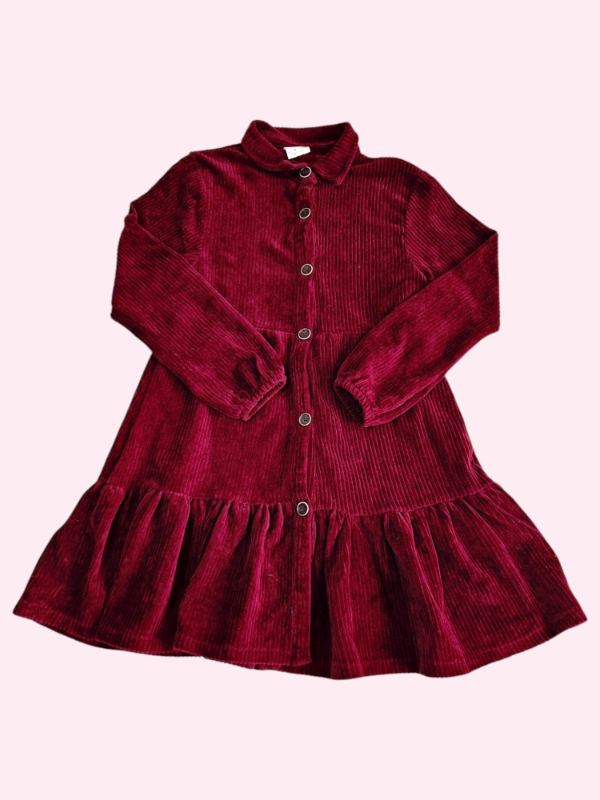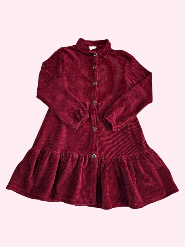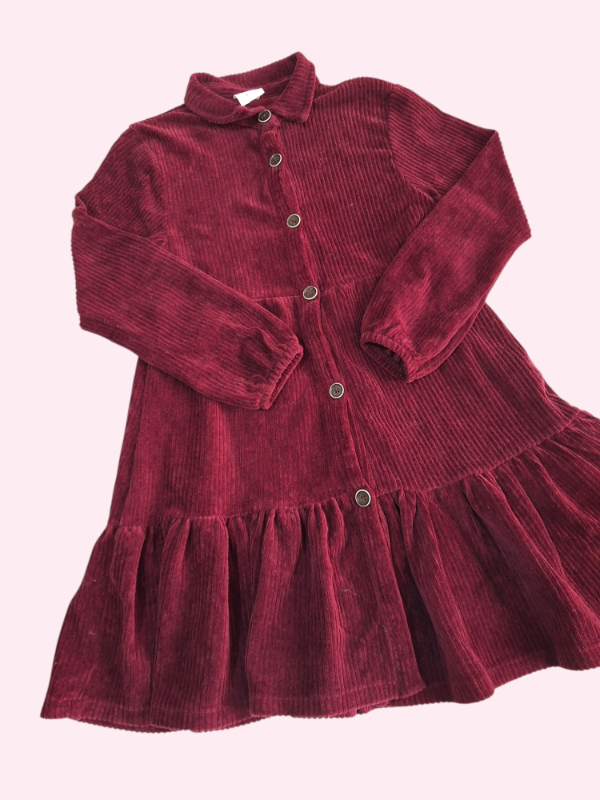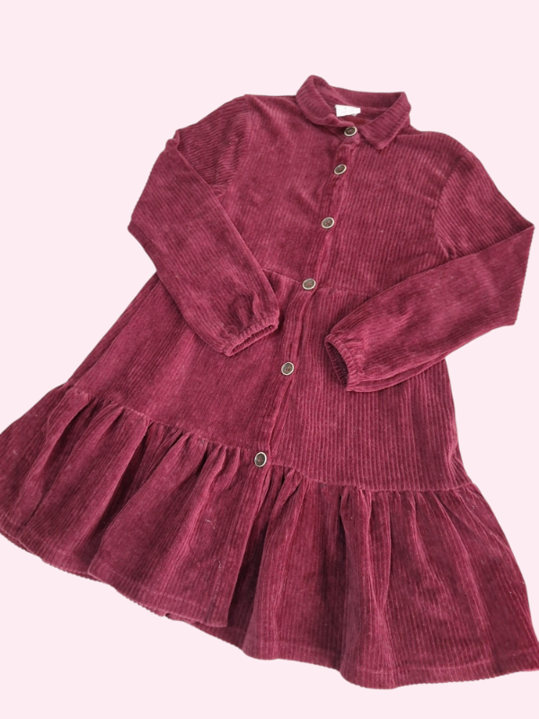 Vestido manga larga de corderoy flexible color bordó Zara 8 años