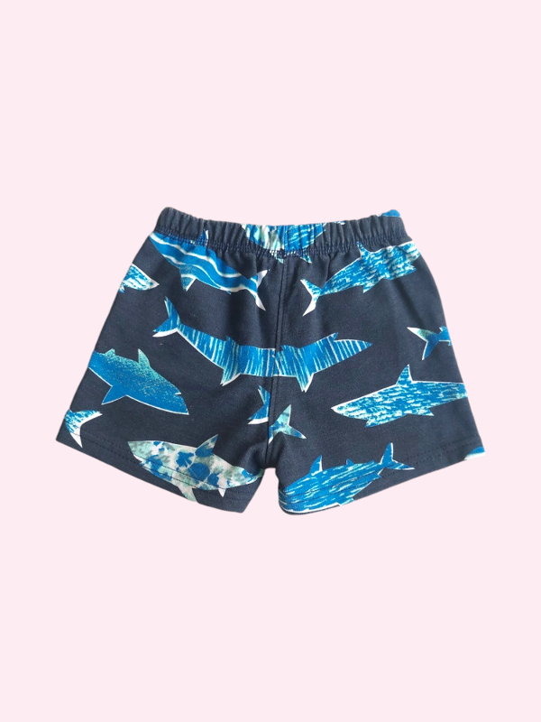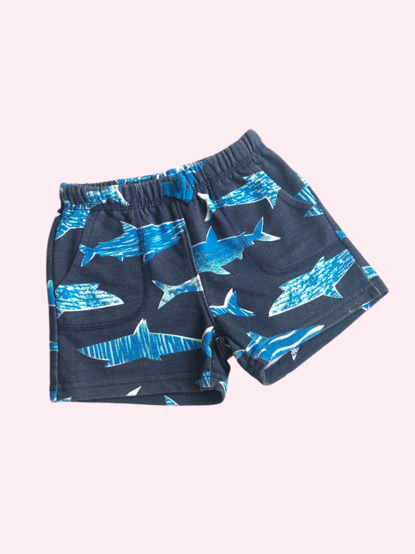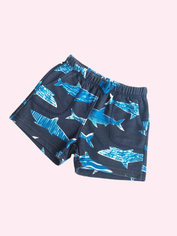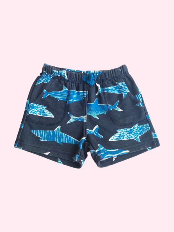 Bermuda de algodón azul con tiburones All Basics 9 meses