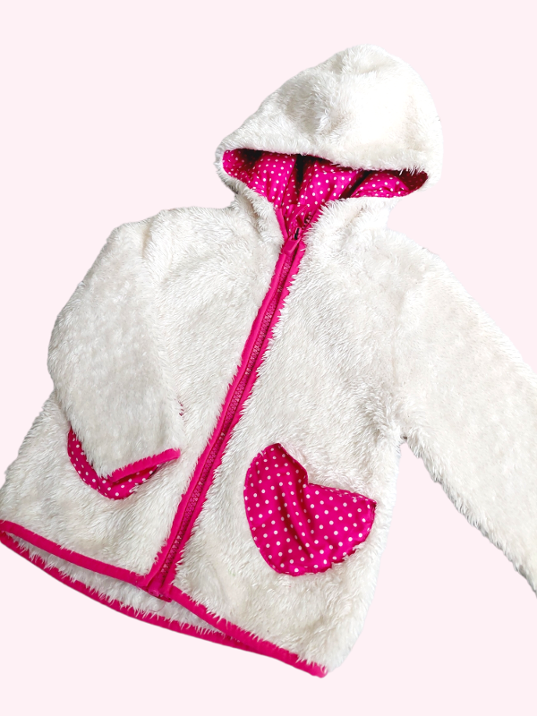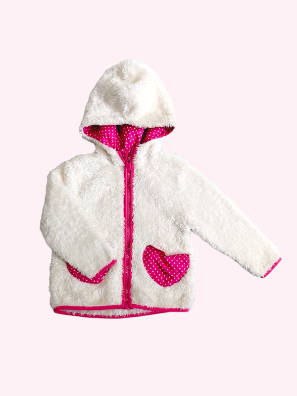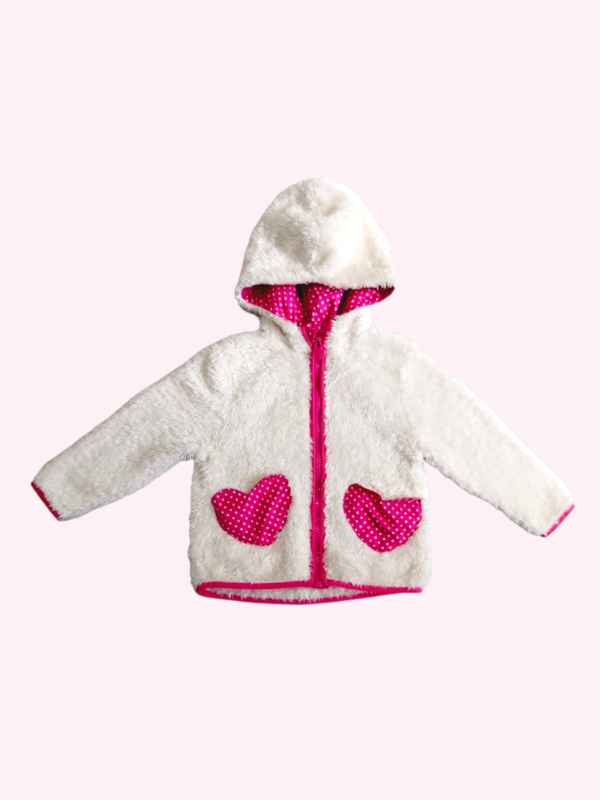 Campera peluda crema con detalle en fucsia y corazón HYM 9/12 meses