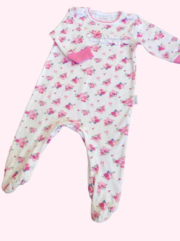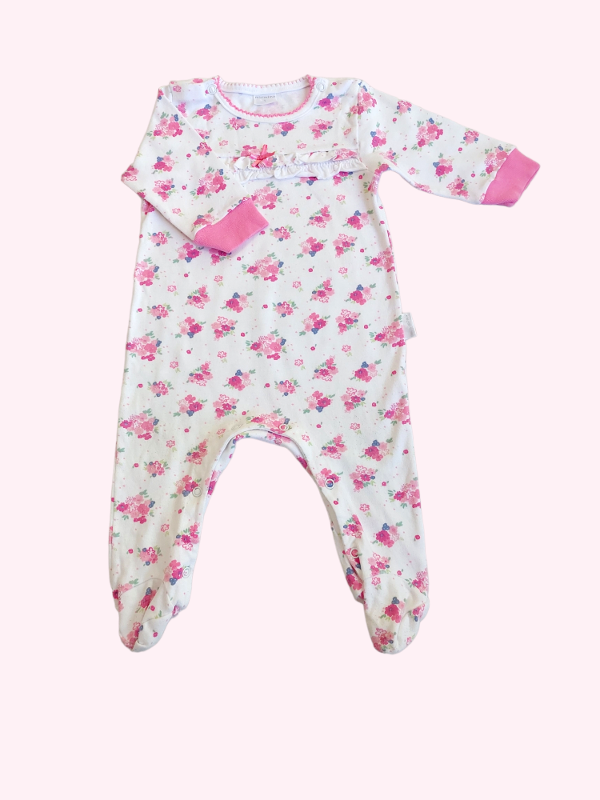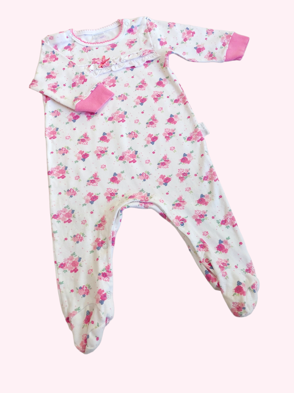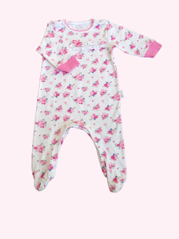 Pijama algodón blanco con flores rosas Mimo 9/12 meses