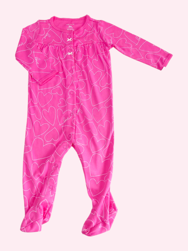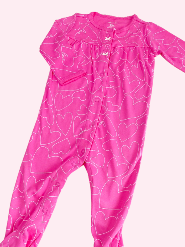 Pijama algodón fucsia con corazones Carters 9 meses NUEVO