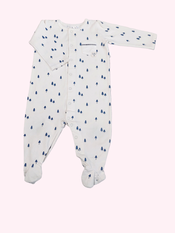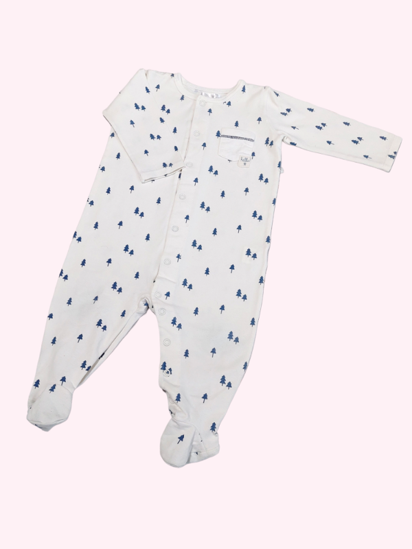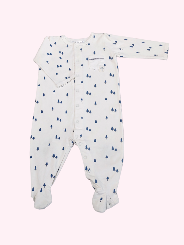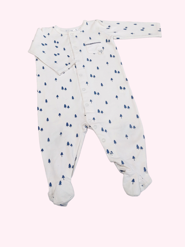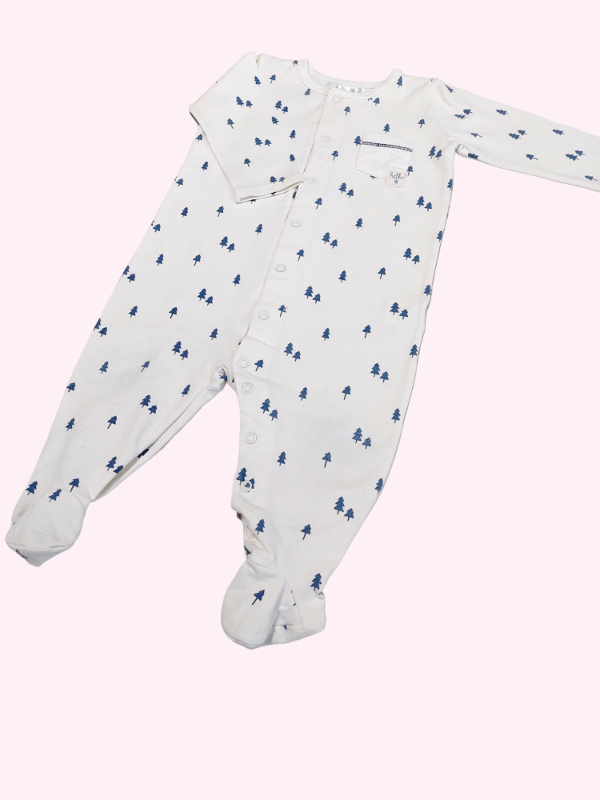 Pijama entero de algodón blanco con pinos azules Cheeky 9/12 meses
