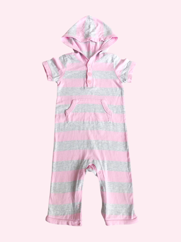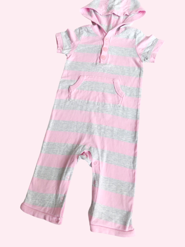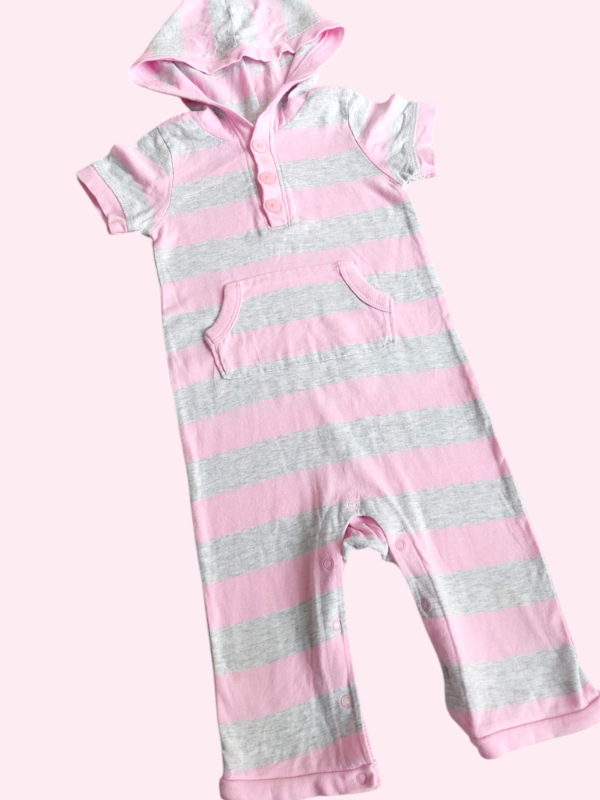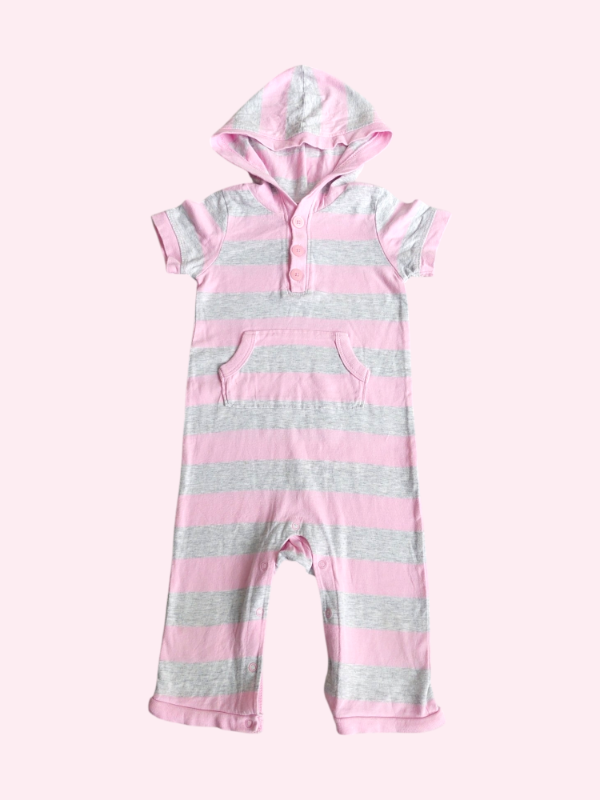 Romper con capucha gris y rosa Old Navy 12 meses
