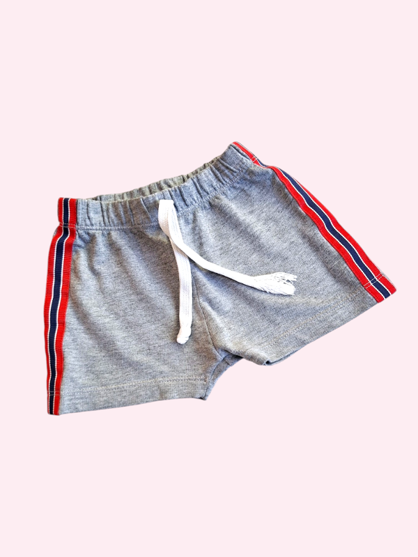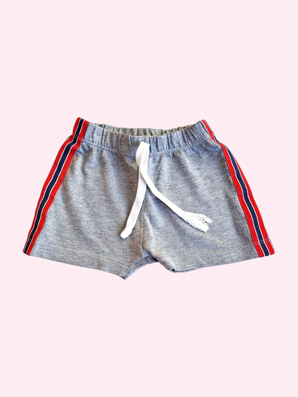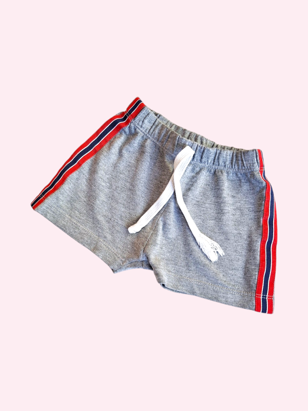 Short de algodón gris con laterales en rojo y azul con cordón Mimo 9/12 meses