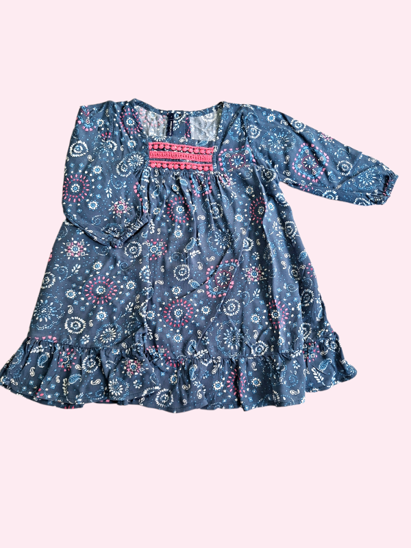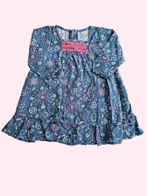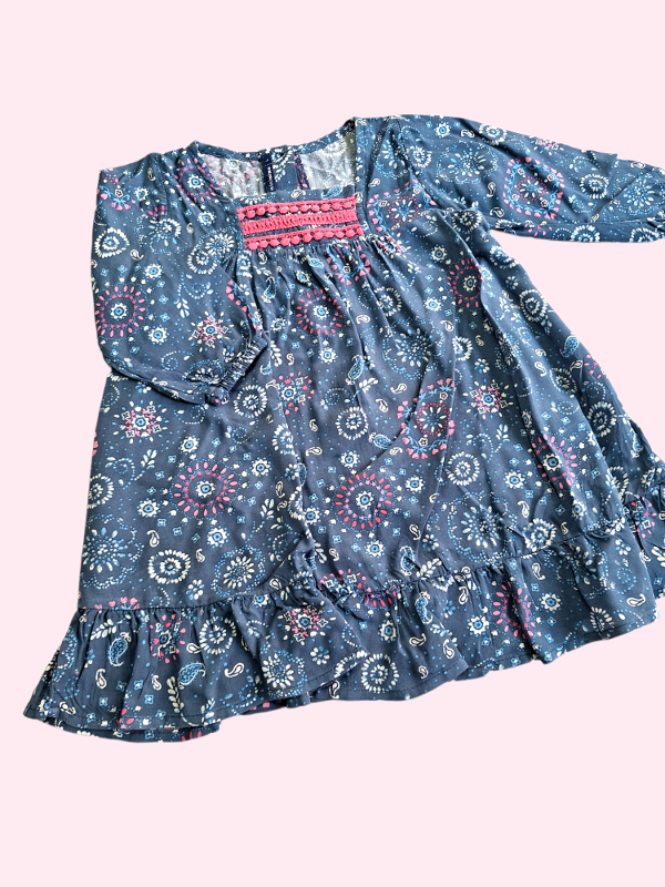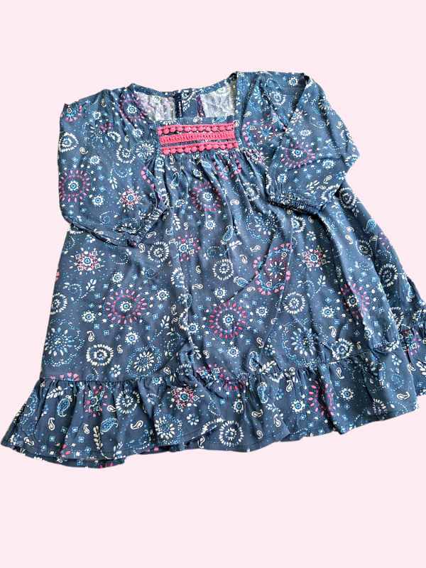 Vestido manga larga azul con rosa Mimo 9/12 meses