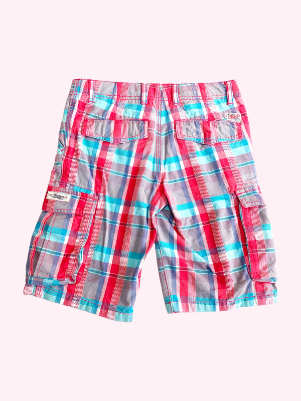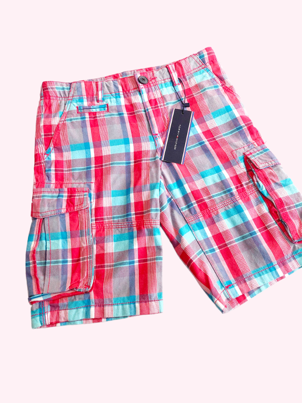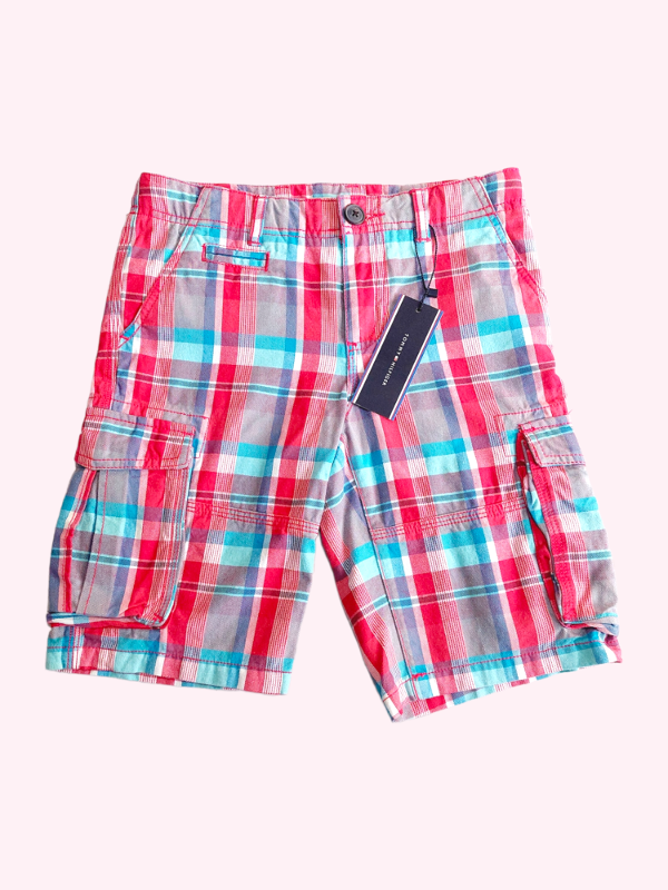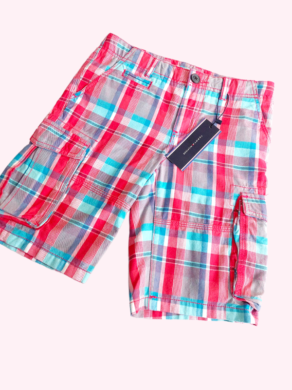 Bermuda cargo cuadrille roja con celeste Tommy 10/12 años NUEVA