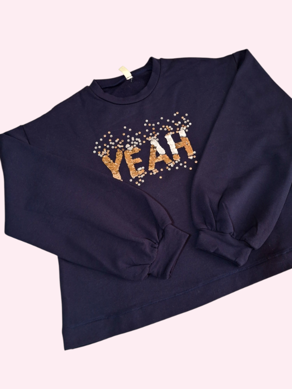 Buzo azul oscuro frizado con lentejuelas YEAH Trendy 10/12 años