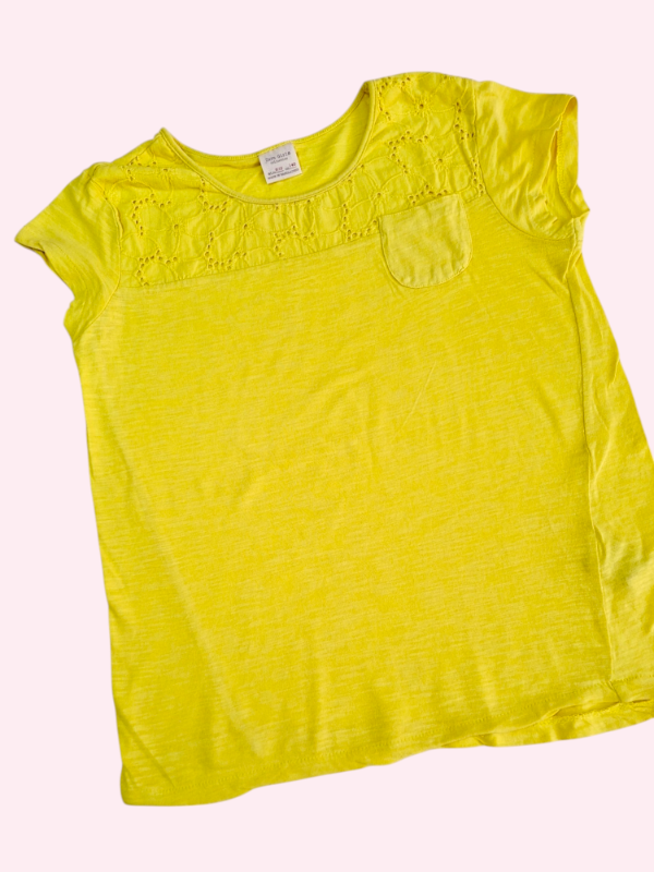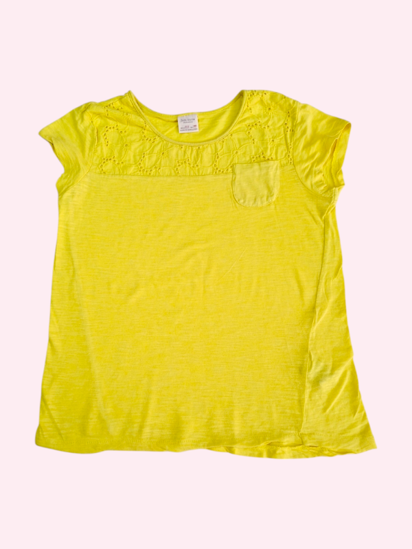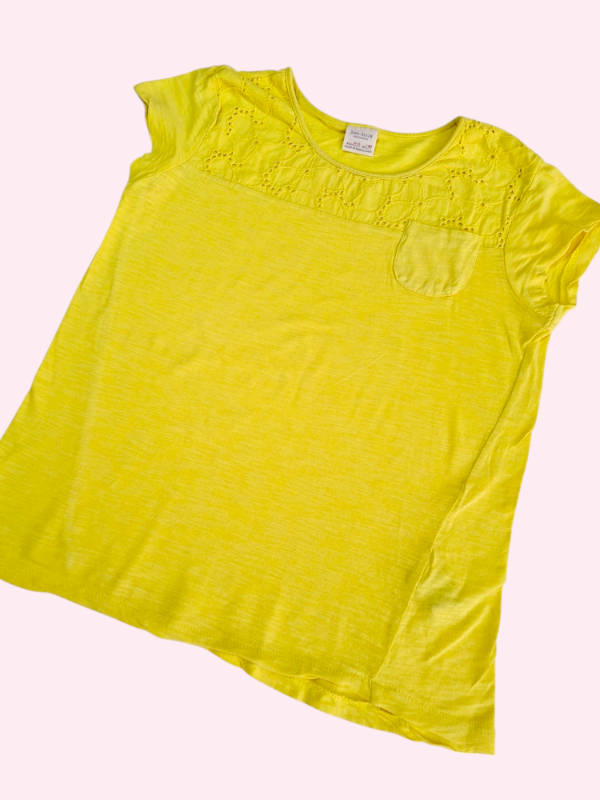 Remera manga corta amarilla con broderie Zara 9/10 años
