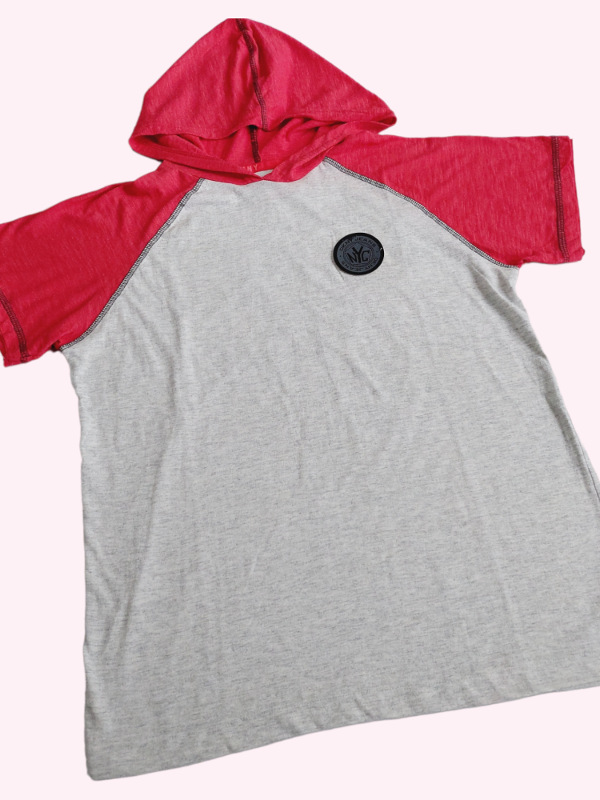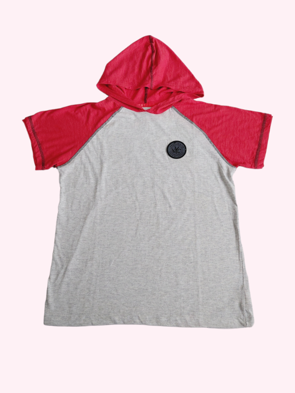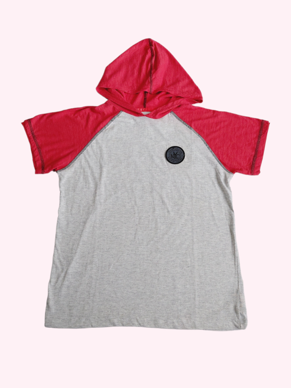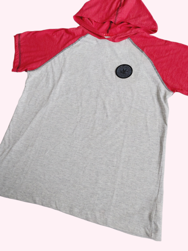 Remera manga corta gris y roja con capucha DKNY 14/16 años