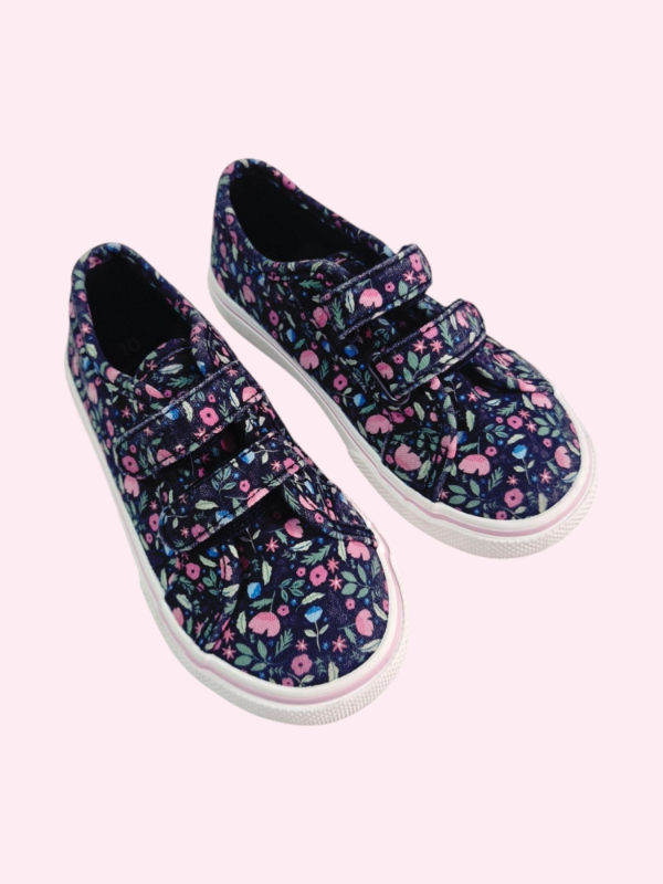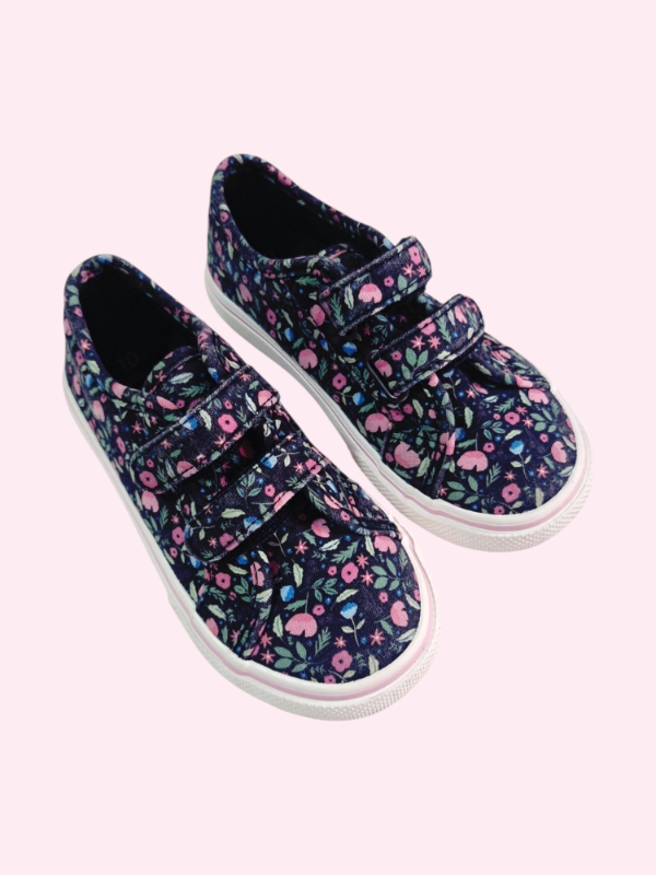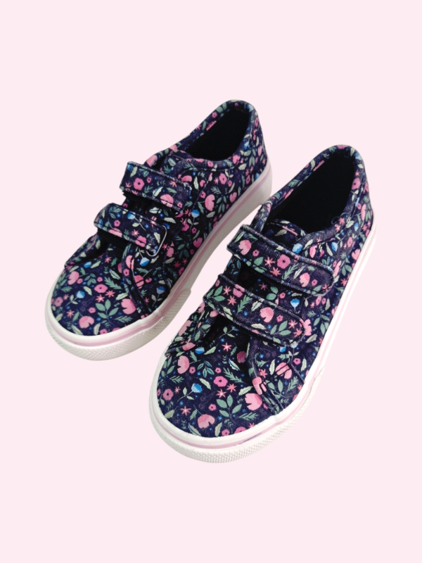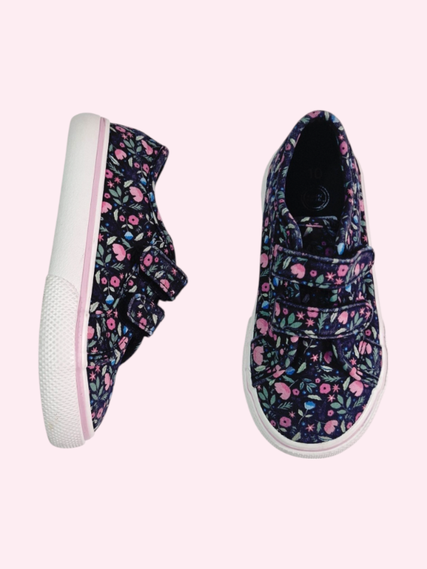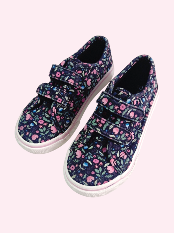 Zapatillas de lona y velcros negras con flores rosas Wonder Nation Talle 26