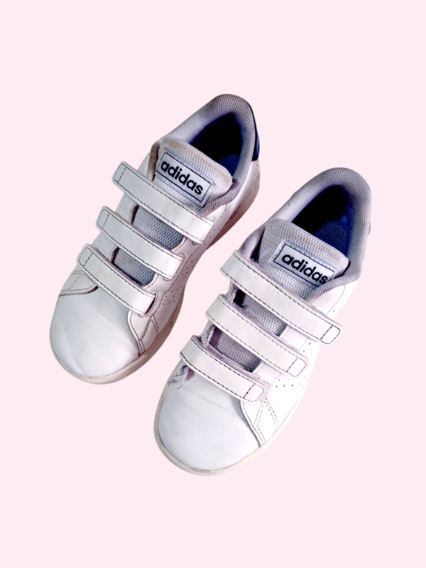 Zapatillas de cuero blancas con azul Adidas Talle 29